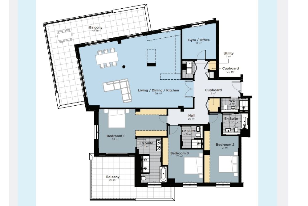Located on the 13th floor, this property will be finished to an extremely high standard, with luxurious, high-end finishes throughout. It offers a generous internal area of 224 m² and south, east and west facing terrace of 69 m², perfect for enjoying the sun and stunning views. Residents also benefit from secure access, parking, and use of the development’s communal swimming pools, all within easy reach of Gibraltar’s shops, restaurants, and leisure amenities.
